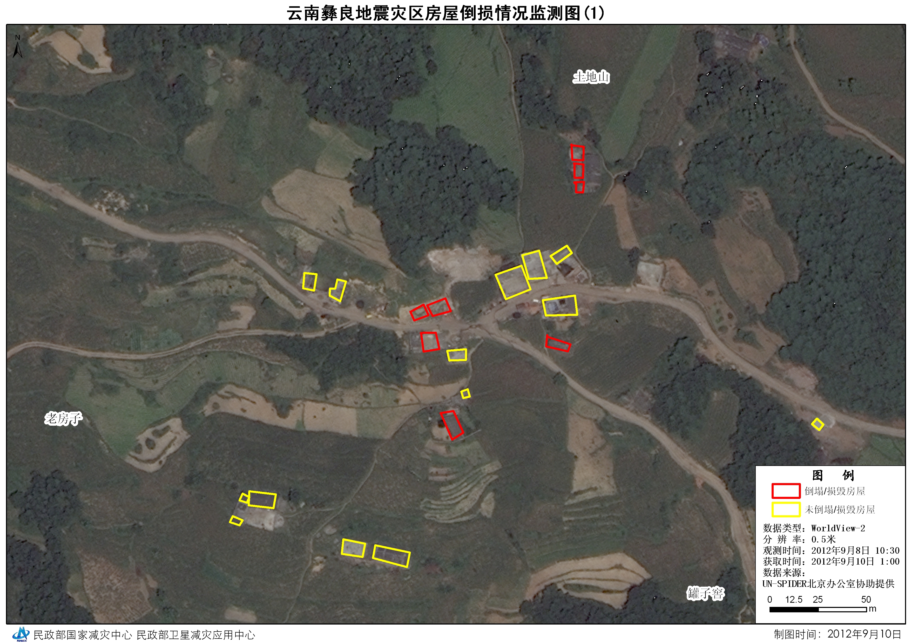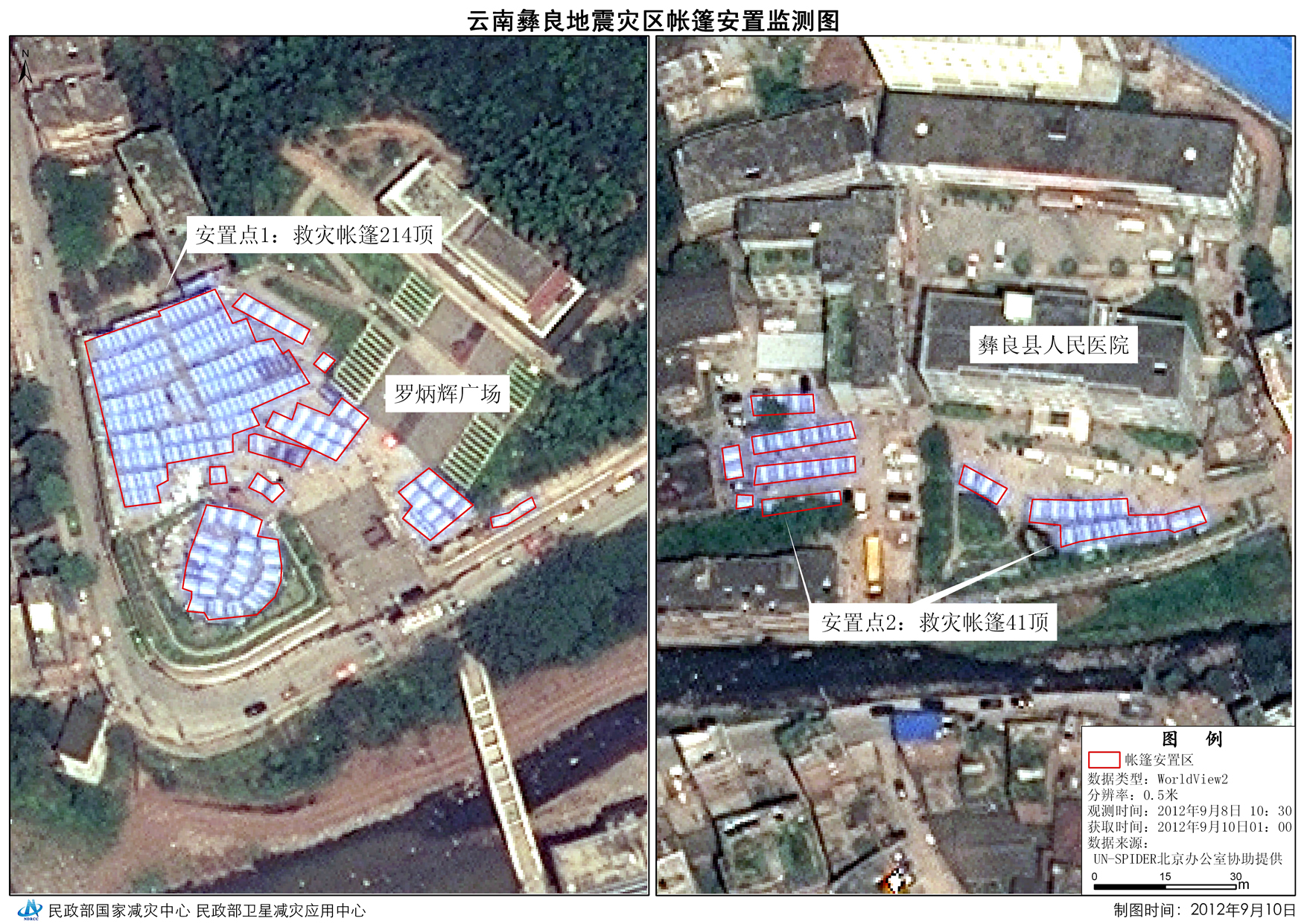 NDRCC staff is on 24 hours duty to utilize these satellite images to assess impact of earthquake. Furthermore, the International Charter: Space and Major Disasters was activated on Friday 7 September 2012 for the region of Yunnan Province and Weining County, Guizhou Province. The Charter was activated by the National Disaster Reduction Center of China (NDRCC).