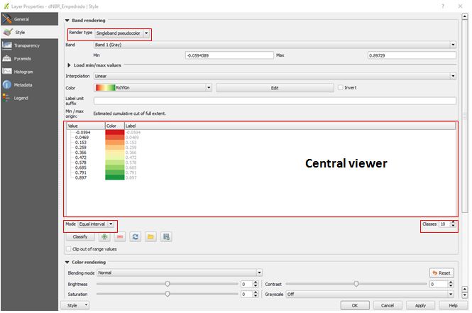 • Change the Render type to Singleband Pseudocolor;