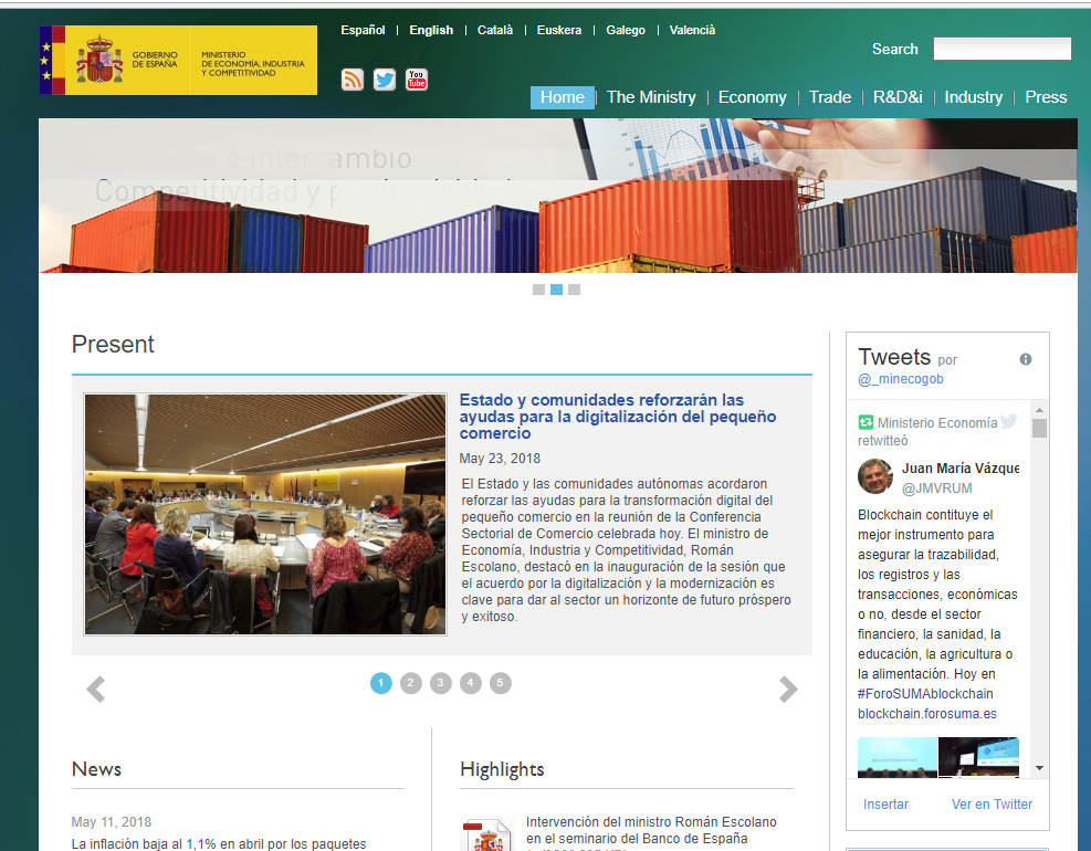 The objective of the Spanish Ministry of Economy, Industry and Competitiveness is to proposal and implementation of the Government's policy on economic issues, and to push for reforms aimed at improving competitiveness, scientific research, technological development and innovation in all sectors. It is also in charge of trade policy and support to companies, as well as other capacities and duties conferred by law.