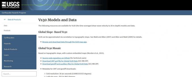 Space-based Information:Compiled Vs30 measurements obtained by studies funded by the U.S. Geological Survey (USGS) and other governmental agencies. Thus far, there are 2,997 sites in the United States, along with metadata for each measurement from government-sponsored reports, Web sites, and scientific and engineering journals. Most of the data originated from publications directly reporting the work of field investigators. A small subset (less than 20 percent) of Vs30 values was previously compiled by the USGS and other research institutions. Whenever possible, Vs30 originating from these earlier compilations were crosschecked against published reports.