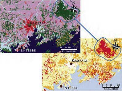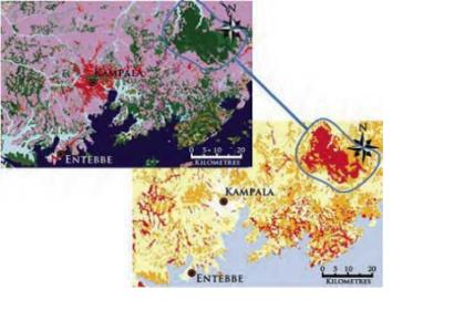 Indicators for African Trypanosomiasis can be related to the type and status of the vegetation and to climatic conditions, such as rainfall, atmospheric temperature and humidity. The indicators are used to identify ecological requirements for tsetse flies habitats. The figure below illustrates the process of identifying the potential presence of vectors in Uganda.