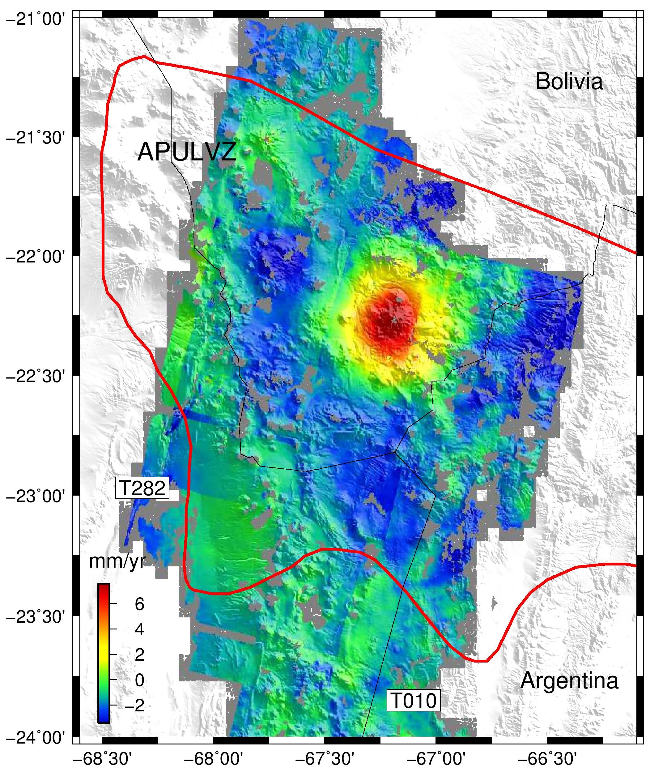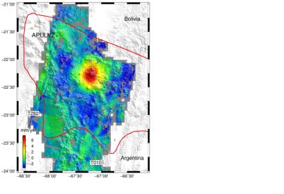 In the central Andes mountains, satellites have detected ground deformation under way above a major subterranean magma body. The Altiplano–Puna volcanic province is part of an active volcanic arc in South America’s central Andes. Extending through Peru, southwestern Bolivia, Chile and northwestern Argentina, it is home to a number of large calderas formed following catastrophic eruptions. Beneath the surface of Altiplano–Puna, about 17–19 km deep, lies the largest known active magma body in Earth’s continental crust.