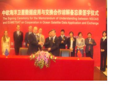 The European Organisation for the Exploitation of Meteorological Satellites (EUMETSAT) and China State Oceanic Administration’s (SOA’s) National Satellite Ocean Application Service (NSOAS) signed on 30 August 2012 a cooperation agreement on the exchange of oceanographic satellite data. The agreement was signed in Beijing by the EUMETSAT Director-General, Alain Ratier, and the Director of NSOAS, Jiang Xingwei, in the presence of the Administrator of SOA, Cigui Liu.