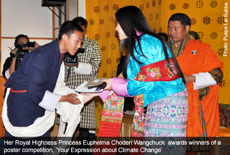Her Royal Highness Princess Euphelma Choden Wangchuck inspired some secondary high school children from in and around Thimphu to learn about and understand climate change issues through interactive and fun-filled exercises using space technologies for practical day-to-day uses at a special youth event organised on 16 November 2011. Her Royal Highness has shown keen interest in this topic and was present throughout the morning’s session.