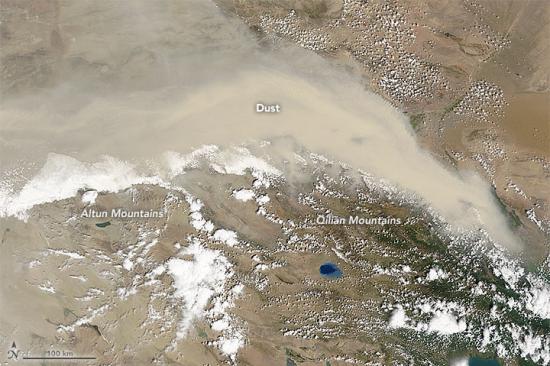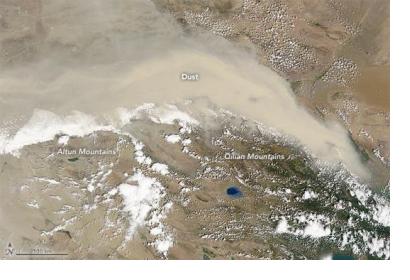 On the 1st of August, the Moderate Resolution Imaging Spectroradiometer (MODIS) on the Terra satellite of the National Aeronautics and Space Administration (NASA) captured some images of large dust storm over the Taklimakan desert.