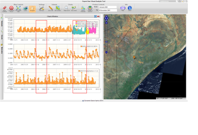 The Multi-sensor Evolution Analysis (MEA) platform supports Earth Observation communities in loading, visualizing and analysing multi-dimensional datasets. Implemented in the framework of the European Space Agency ASIM project, MEA has been recently adopted in the European Commission EarthServer initiative as graphic user interface of the Climate Data Service. MEA is a multi-product satellite data management and exploitation system that allows its users to access to a wide set of satellite-based data (e.g. vegetation indexes, soil moisture, precipitation) and display the temporal evolution of these fields to identify long term trends as well as short term / abrupt changes. The global coverage as well as the fast response to data access, and the possibility to visualize many fields simultaneously, make of MEA a powerful tool to monitor the effect of long term trends (e.g. drought) and early identify the effect that climate change is having on areas more prone to natural threats.