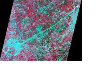 The physical principle guiding the use of satellite data to detect tornado damage is based on the premise that the strong winds associated with a tornado will change the physical characteristics of the surface in such a way as to alter the visible and infrared energy reflected. These characteristics could be a change in the orientation of surface features, such as the complete destruction of a house in a residential area, the snapping of trees in a forest region, the uprooting of crops in an agriculture area, or minimal damage to grassland in a pasture or field.