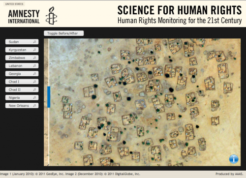 But professional satellite imagery experts who have plenty of time to volunteer their skills are far and few between. The Satellite Sentinel Project (SSP), which I blogged about here, is composed of a very small team and a few interns. Their focus is limited to the Sudan and they are understandably very busy. My colleagues at AI-USA analyze satellite imagery for several conflicts, but this takes them far longer than they’d like and their small team is still constrained given the number of conflicts and vast amounts of imagery that could be analyzed. This explains why they’re interested in crowdsourcing.