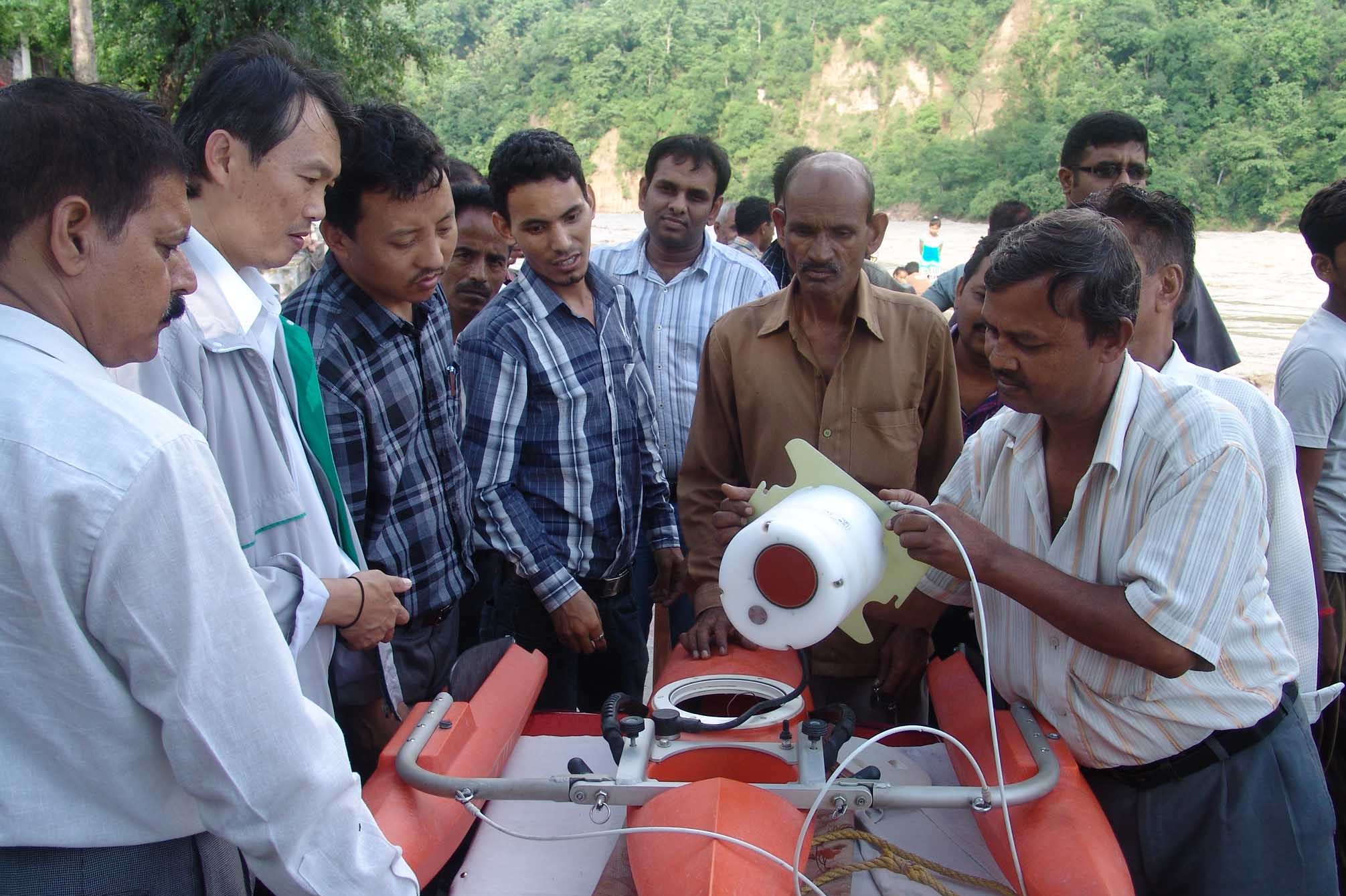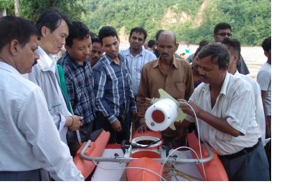 The participants also visited the downstream area of the recent floods in Northern India (Kedarnath) that caused heavy losses of life and damage to the property a month ago. The Central Water Commission (Government of India) demonstrated the Acoustic Doppler Current Profiler (ADCP) that collects flood level and discharge of the river and transmits the data trough telemetry system to the servers for flood analysis and decision making.