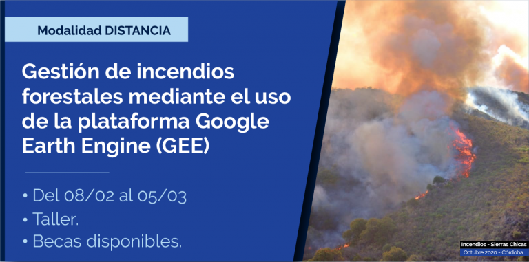 The virtual training course will be carried out from 8 February to 5 March 2020 in Spanish. More information on this training course is available on the course page: Taller Gestión de Incendios Forestales Mediante el Uso de la Plataforma Google Earth Engine (GEE) – Instituto Gulich (unc.edu.ar)