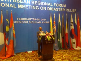 The 13th ASEAN Regional Forum Inter-Sessional Meeting on Disaster Relief took place from 26 to 28 February 2014 in Chengdu, China. Participants discussed early warning and assessment of risks, military-civil coordination, humanitarian assistance stockpiles management, damage assessment, recovery and reconstruction, and the future direction of regional disaster relief cooperation including preparations for the ASEAN Regional Forum Disaster Relief Exercises in 2015.