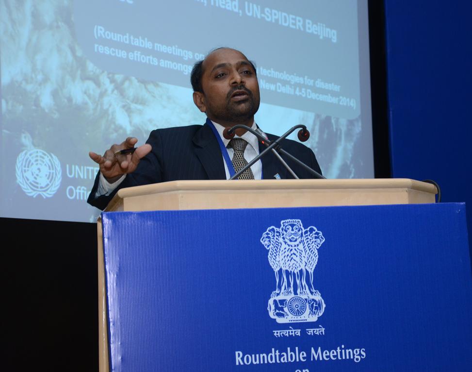 The "Roundtable Meetings on Innovations in Technologies for Disaster Rescue Efforts amongst ASEM countries" took place on 4 and 5 December 2014 in New Delhi, India. ASEM is the Asia-Europe Meeting. Shirish Ravan of UN-SPIDER co-chaired a session on Technology Transfer: Joint ventures among ASEM Countries and presented the topic "Consideration for Effective Use of Space-based Information for Emergency Response".