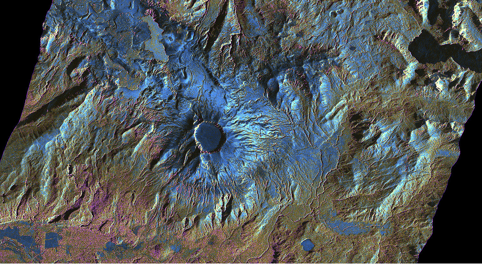 The crater of the Chilean volcano Puyehue displays a striking, circular outline in this image from the German Aerospace Center (Deutsches Zentrum für Luft- und Raumfahrt; DLR) TerraSAR-X satellite – so this was not the culprit when a volcano in the southern Andes erupted on 4 June 2011. Instead, as the images from the German radar satellite show for the first time, the new eruption centre lies 6.7 kilometres further to the northwest, in the Cordón Caulle region. A field of lava, appearing as a uniform, light blue surface, is currently forming there. Radar images acquired by TerraSAR-X have been providing valuable information to the staff of the Chilean Volcano Risk Programme since the eruption began, helping them to assess the situation and predict its future development.