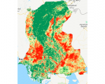 The VCI is an indicator of the status of vegetation cover as a function of NDVI minima and maxima encountered for a given ecosystem over many years. It is a better indicator of water stress condition than the NDVI. The deviation of the vegetation condition is an indicator of the intensity of the impact of drought on vegetation growth. The VCI is calculated using the following formula: